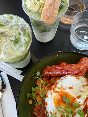 Coffee comes courtesy of Single O, ensuring a solid foundation for your morning brew, but Zmirk’s drinks menu ventures well beyond standard café territory. Specialty beverages reflect the same creative fusion approach as the food. Matcha features prominently across several drinks, including the matcha tiramisu latte that’s already earning particular praise from early visitors. Oat-milk hojicha lattes offer a toasty, gentler alternative to standard coffee, while chrysanthemum tea topped with matcha foam provides a lighter option.